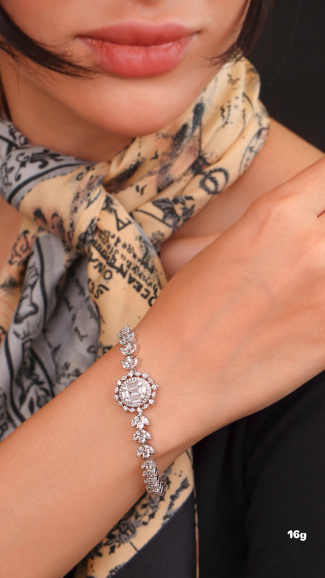 دستبند نقره ۹۲۵ عیار برند GTA مزین به نگین باگت و مارکیز