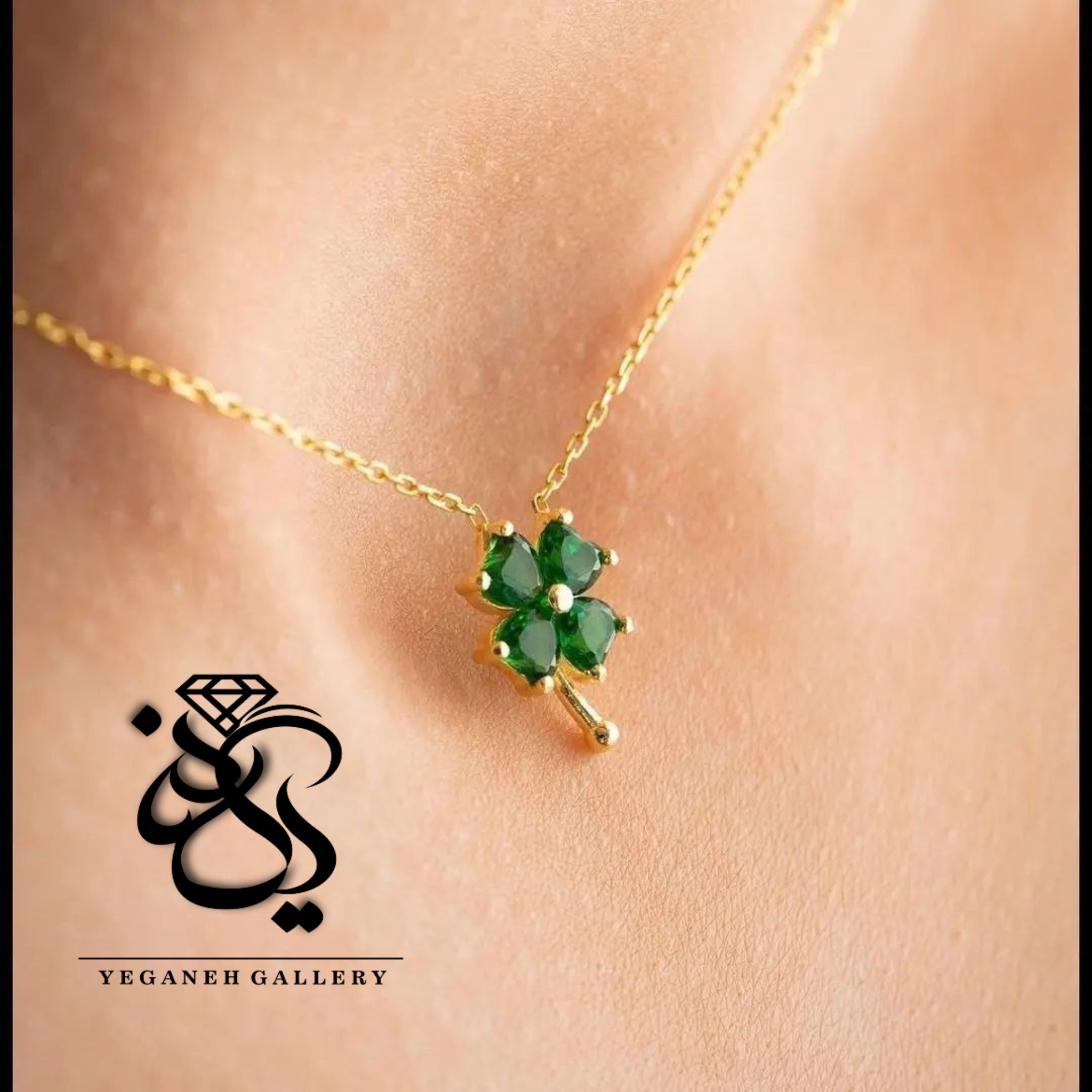 گردنبند طلای شبدر قابل سفارش با سنگ جواهر و اتمی 💎